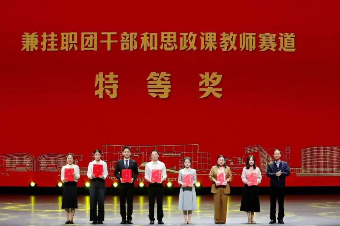 王豪杰(左四)、王晓迪(右四)荣获兼挂职团干部和思政课教师赛道特等奖