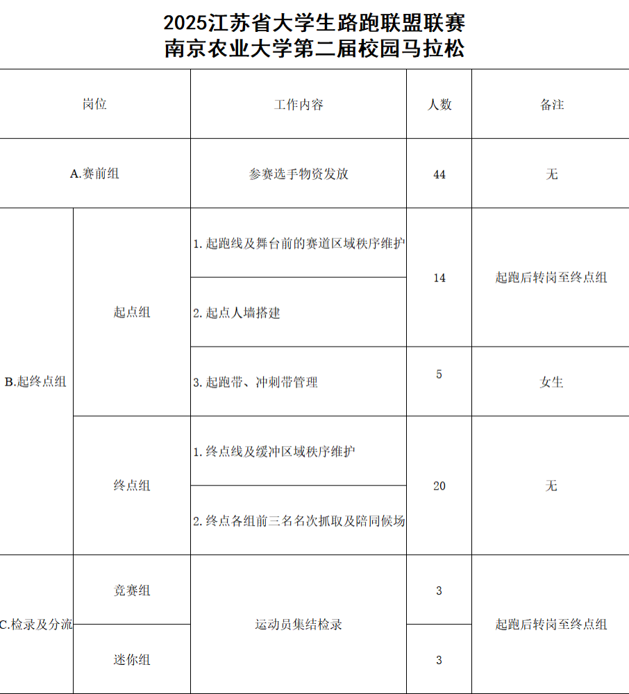 为切实保障2025年江苏省大学生路跑联盟联赛暨南京农业大学第二届校园马拉松顺利举办,确保赛事各环节顺畅运行、提供专业周到的服务保障,现就志愿者招募、培训、管理及保障事项通告如下: