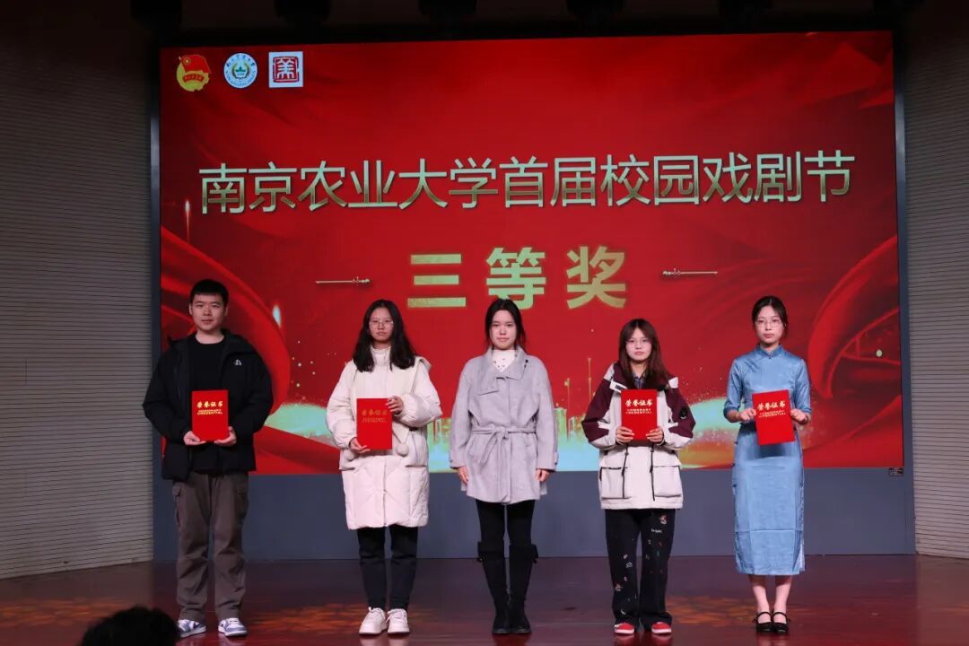 南京农业大学首届戏剧节竞演剧环节于12月17日–18日在滨江校区音乐厅、卫岗校区大学生活动中心举行,活动由校团委、公共艺术教育中心主办,园艺学院团委承办。前期经过学生自主报名、学院推荐,共有来自8个学院9部作品参评。经专家评审,7个作品进入现场竞演环节。本届戏剧节特别邀请到国家一级编导、中国戏剧文学会理事、江苏省演艺集团话剧院党支部书记解涛担任嘉宾评审,图书馆(文化遗产部)副馆长(副部长)辛闻、园艺学院党委副书记束浩渊、动物医学院党委副书记姚敏磊、人文与社会发展学院副教授赵超共同担任评委。来自18个学院的700余名师生观众观看了本次大赛。