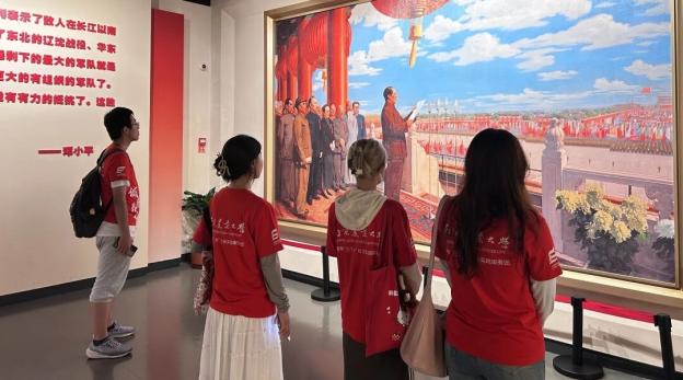 实践团成员先后参观调研了六大主题展区,学习了2000余件珍贵文物的来源及相关历史图片,系统了解了自新民主主义革命以来,中国共产党带领人民进行革命、建设和改革的壮阔历史。在“南京解放”沙盘模型前,实践团成员们充分了解了战役细节和人民解放军解放南京的历史;在“改革开放”展区前,实践团成员们驻足观看南京工业、民生领域的老照片与数据对比,直观感受时代变迁。