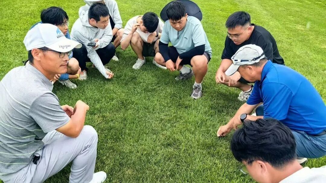 在专业老师杨志民、胡健两位老师指导下,赴大连夏丽国际高尔夫球场,以实地调研与实操为主:系统考察18洞高尔夫球场,了解其滨海特色风貌,详细调研喷灌系统的水源、动力及管道布局;完成球场测量、数据采集、汇总及工程量计算。该实践聚焦球场运营管理,结合喷灌系统设计施工、草坪养护等实操,融入行业规范教育与技能训练,引导学生遵守规范、了解前沿,强化理论联系实际能力。