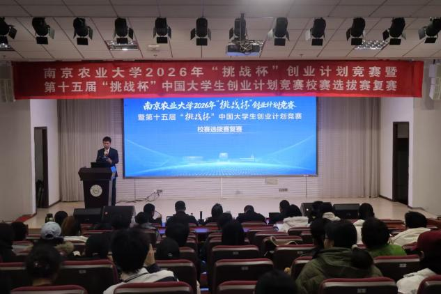 12月24日,南京农业大学2026年“挑战杯”创业计划竞赛暨第十五届“挑战杯”中国大学生创业计划竞赛校级选拔复赛在卫岗校区教四楼报告厅举办。经初赛遴选,共有24支团队进入复赛。赛事邀请相关领域专家组成评审组进行评审。