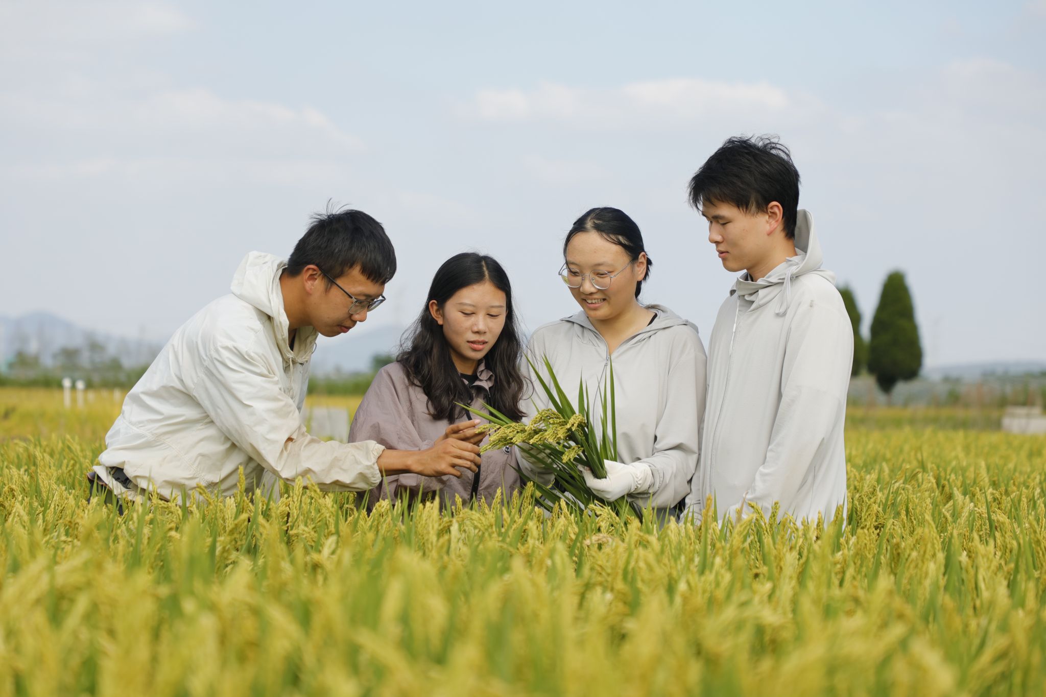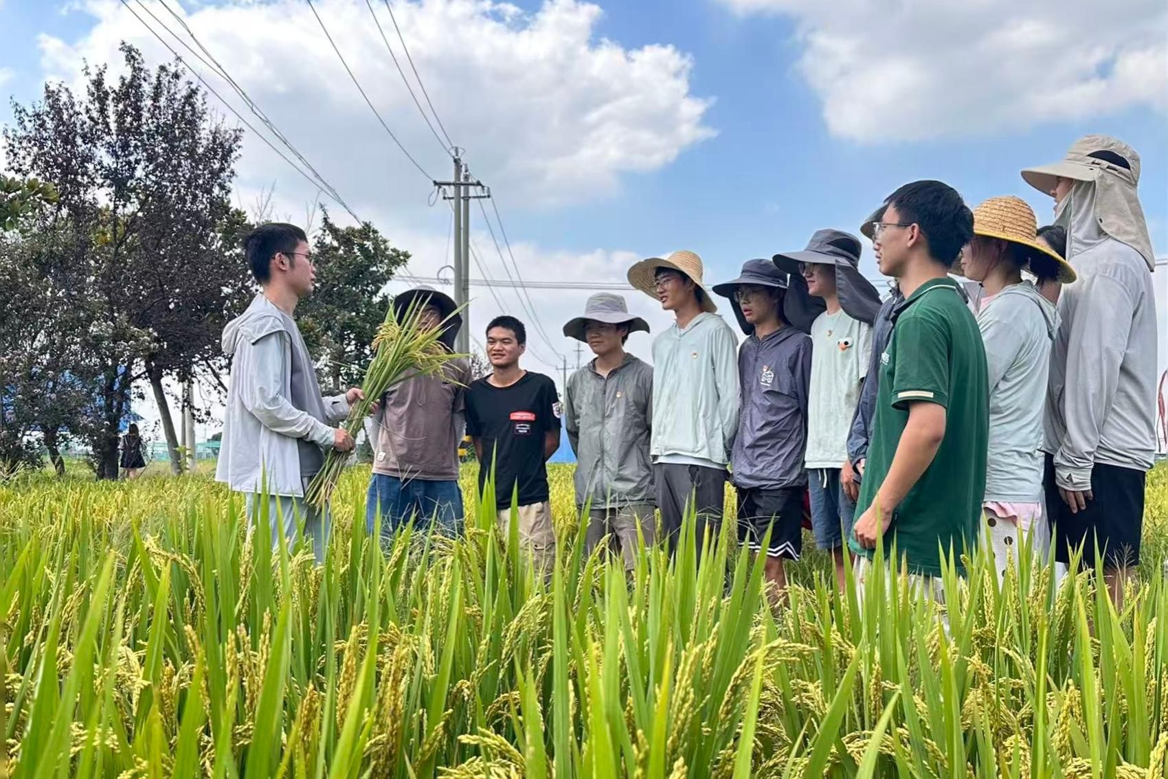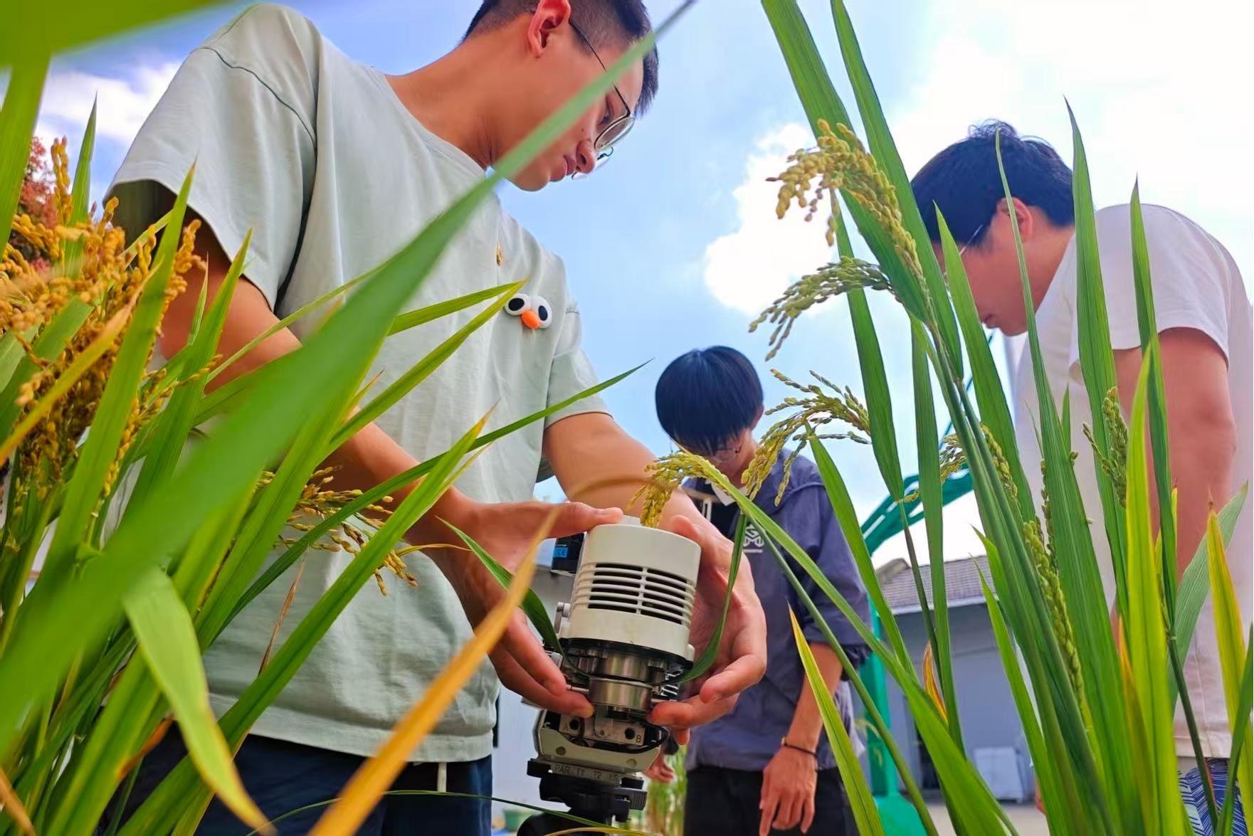 “这块田是粳稻、这块是籼稻,粳稻种植的品种是宁香粳9号,大家穿好水鞋,下田取样观察水稻灌浆情况……”南京农业大学白马教学实验基地处水稻栽培专业的博士研究生张华正带领着师弟师妹们检测水稻灌浆情况,通过取样来观察水稻籽粒饱满程度,精准追踪“灌浆速率、积累量、持续时间”等核心动态,为籽粒长饱满、高品质“规划路径”。