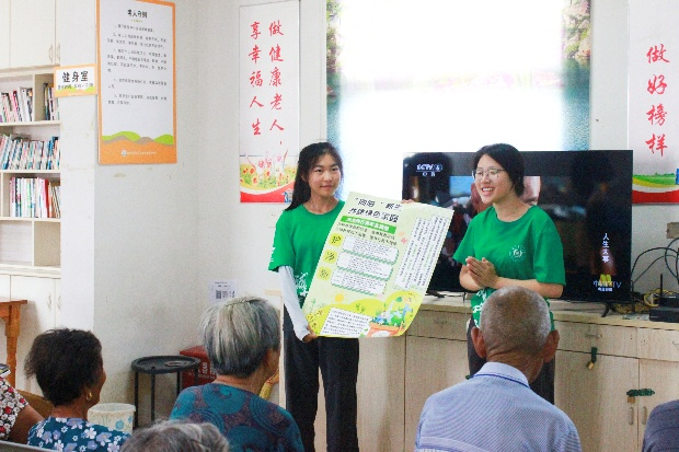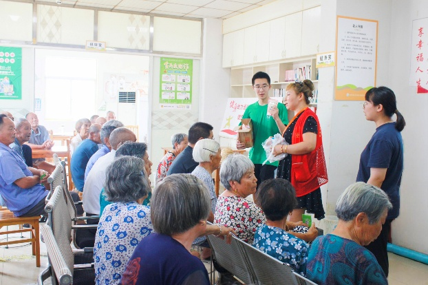 宣讲后,中心工作人员协助实践团成员分发垃圾分类手册及生活物品,老人们认真学习,与成员深入交流,现场氛围热烈,知识悄然入心。