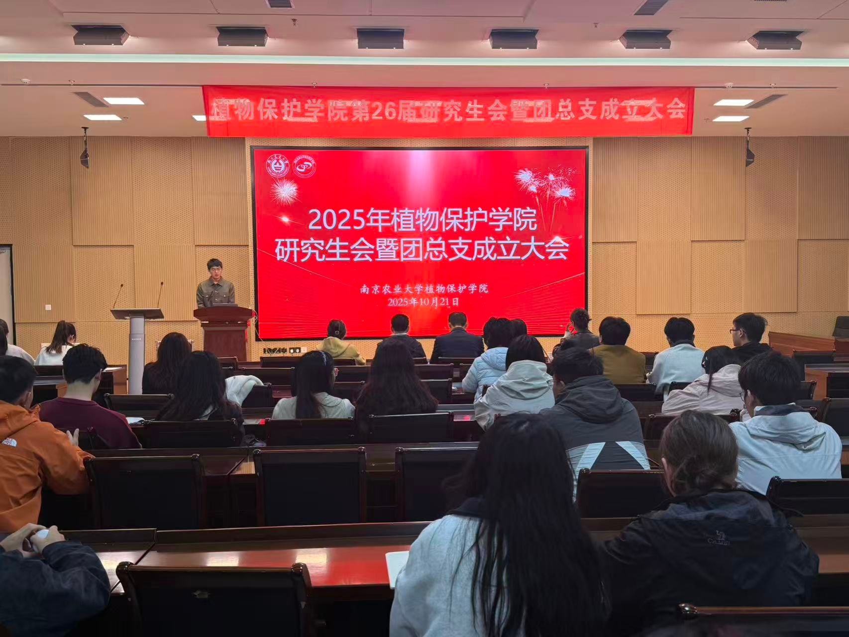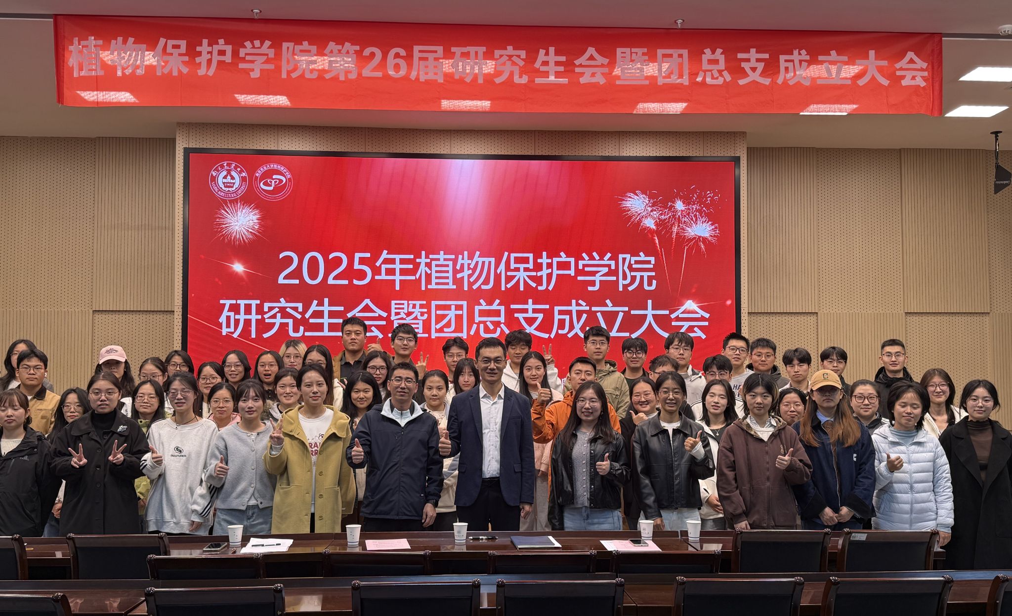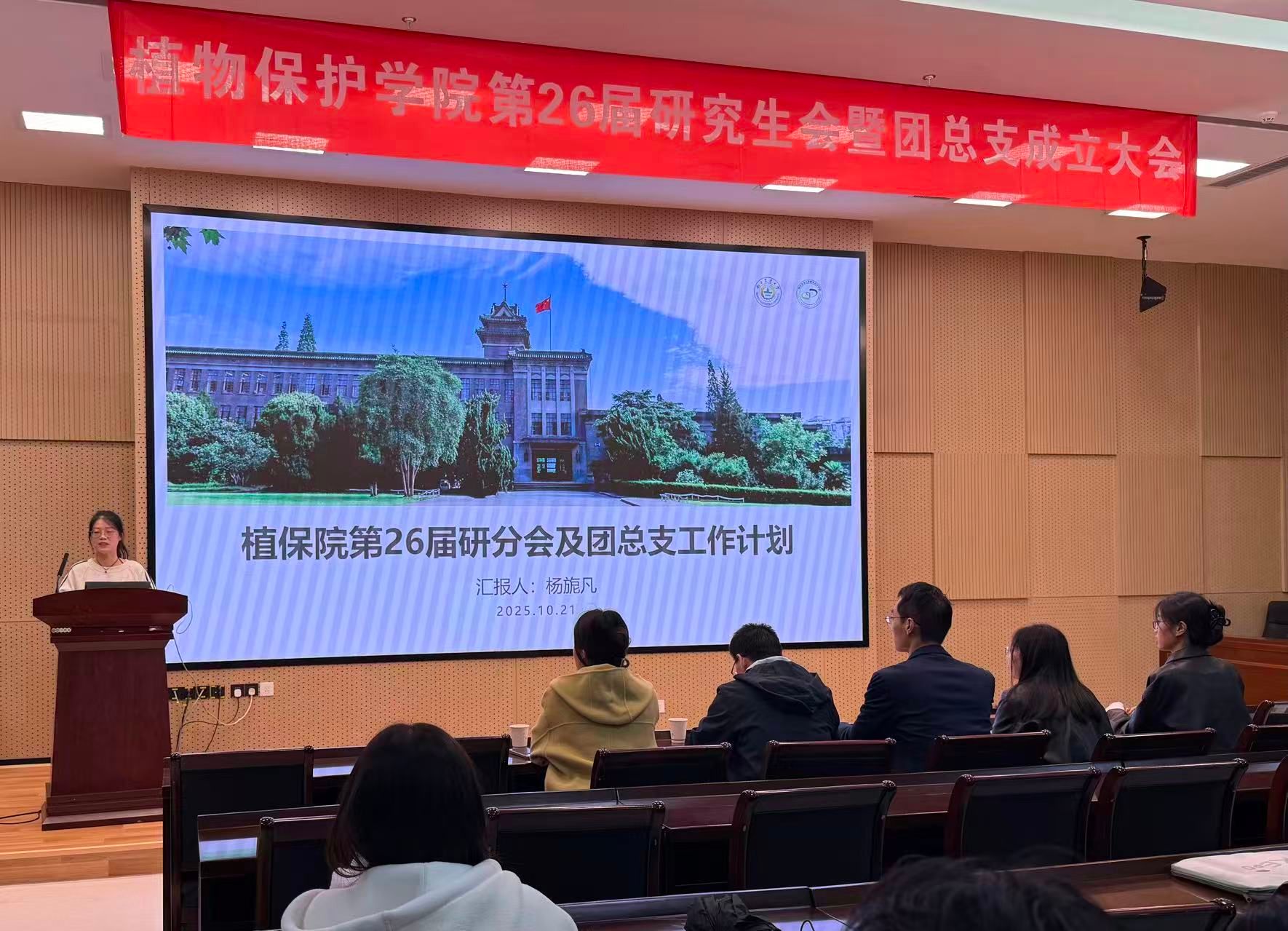 10月21日下午,植物保护学院在21号楼114会议室召开第26届研究生会暨团总支成立大会。学院党委副书记陈志亮,研究生辅导员罗舜文、鞠然然,校研究生团工委副书记潘星颖,学院第25届研分会执行主席卢亚欣出席会议,学院第26届研分会全体成员、2025级研究生新生班长和团支书参加了会议,会议由学院第26届研分会办公室干事周锦鸿主持。