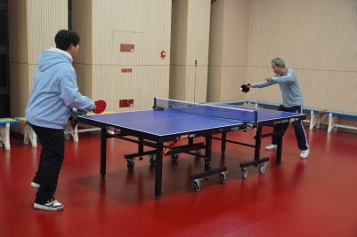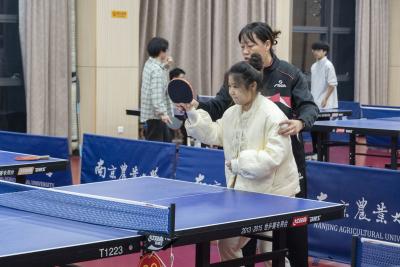 基础技能练习后,同学们开启自由对打环节。球桌旁,有同学拿着刚记的笔记对照调整姿势,宋老师则穿梭在各桌间,时不时提醒“脚步要跟着球动”“发力点在腰部”。原本略显生疏的同学,渐渐能打出流畅的回合,乒乓球在球网间来回跃动,像传递着蓬勃的热情。资环学院叶民标老师作为一名超级体育迷,也来到了活动现场,并和同学进行了乒乓对打。