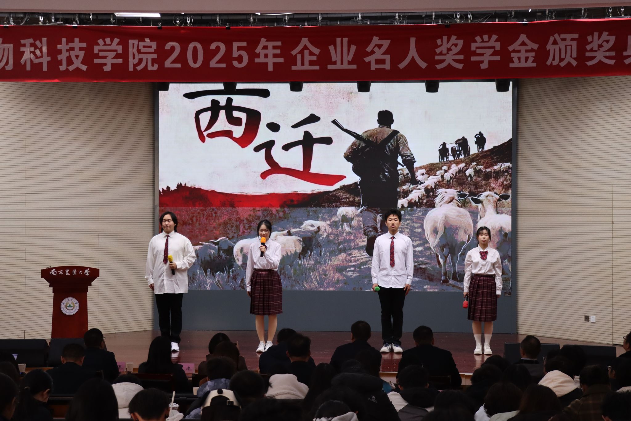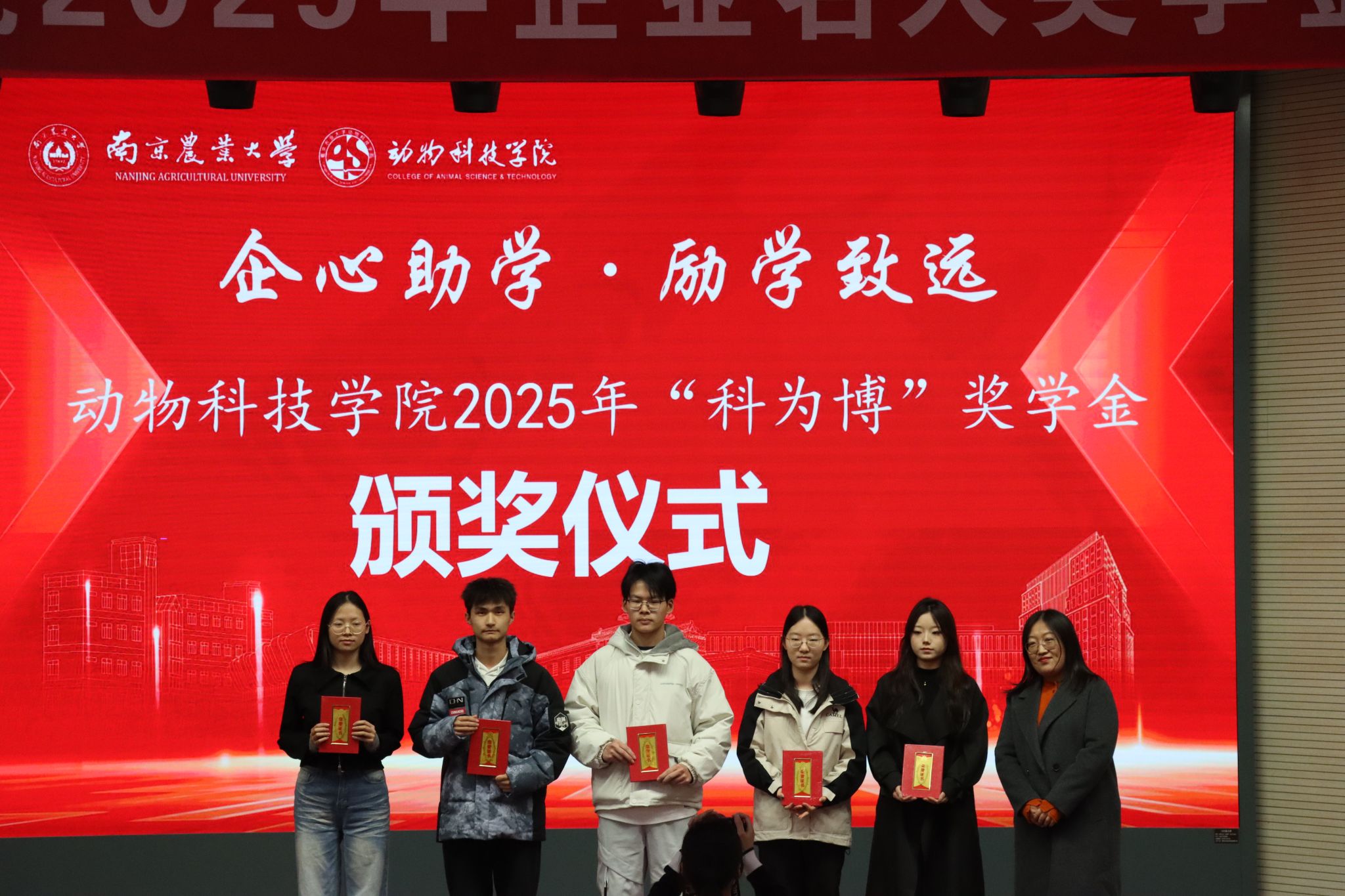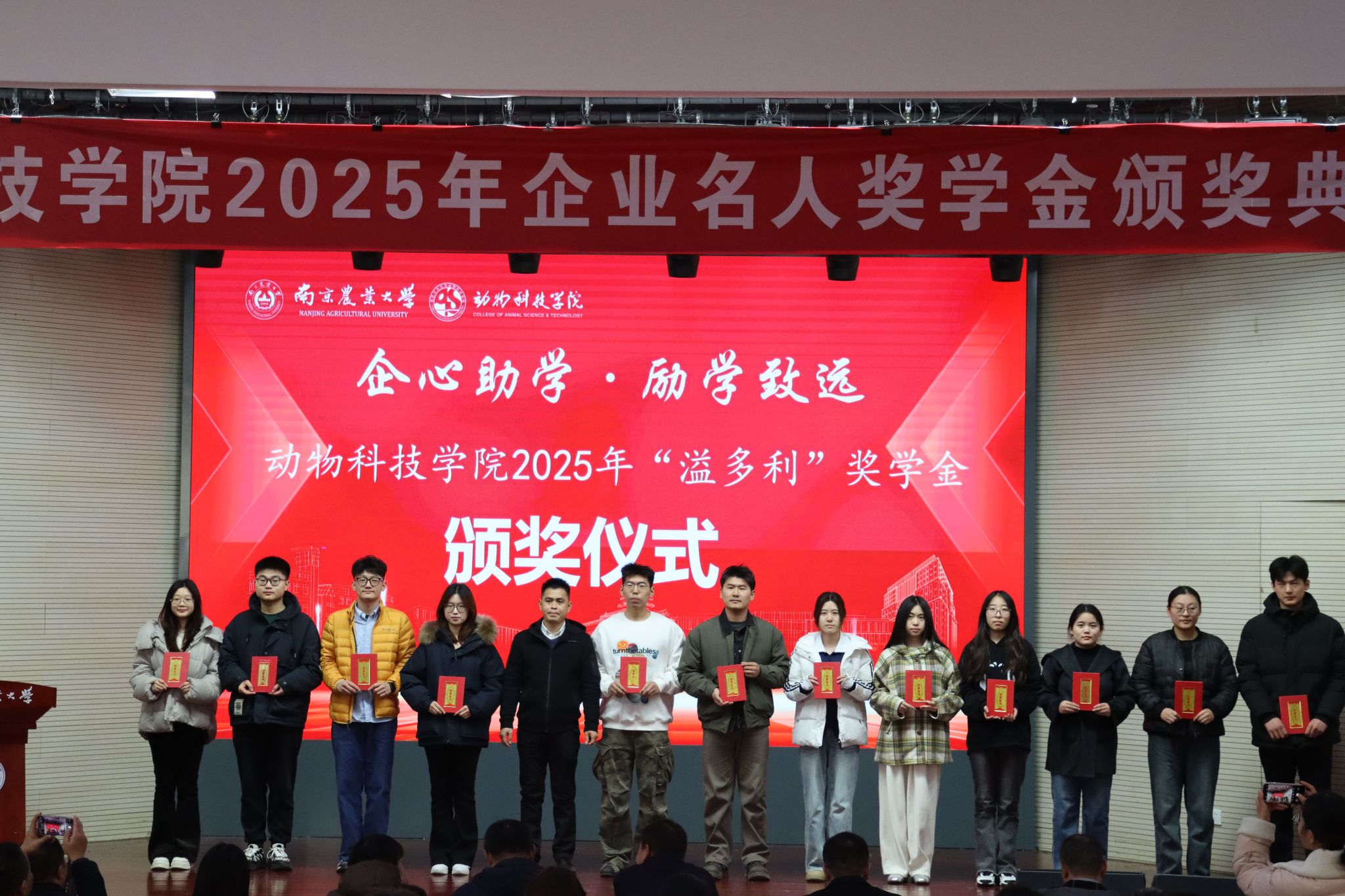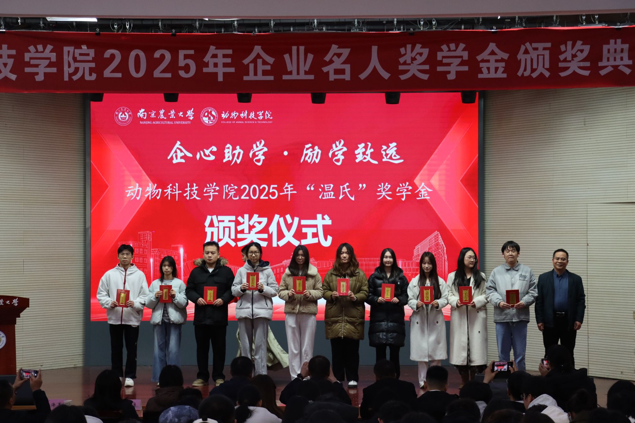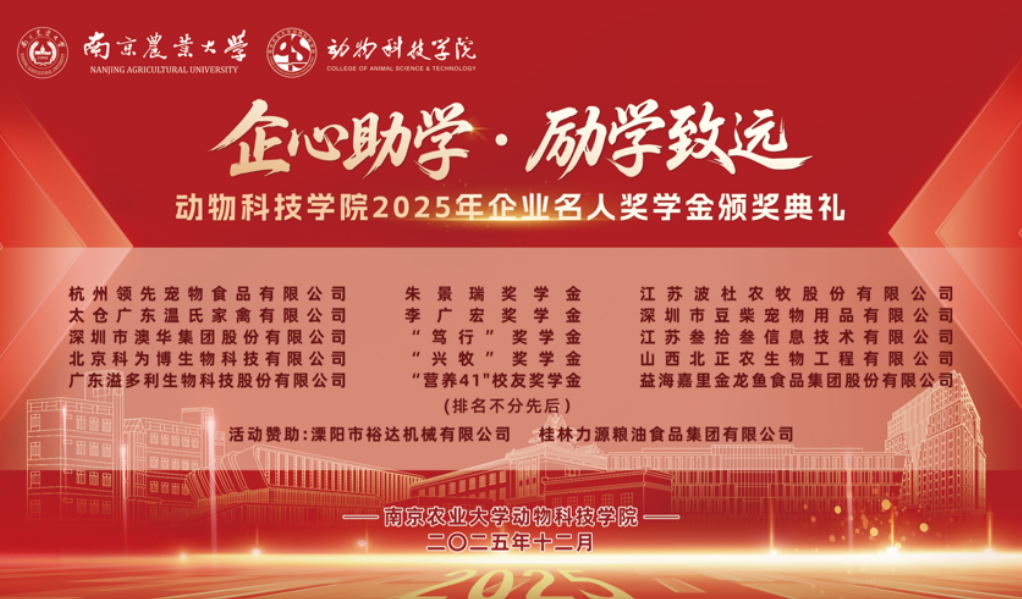 2025年12月6日下午,南京农业大学动物科技学院2025年“企心助学,励学致远”企业名人奖学金颁奖典礼在大学生活动中心隆重举行。