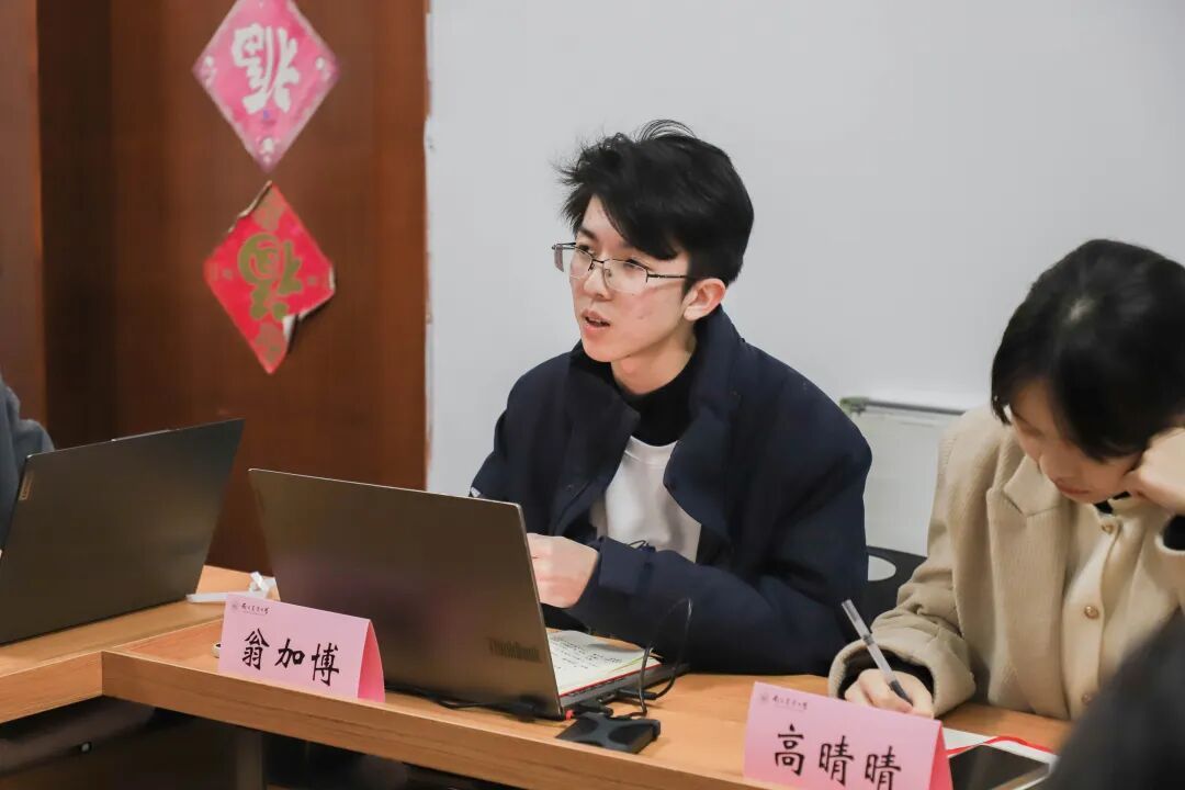 高晴晴从比赛细节入手,将团干部思政技能大比武比赛的具体要求、比赛流程以及注意事项娓娓道来,向各位团学骨干分享比赛经验。在团课视频方面,她强调要以第一责任导演的身份,严格把控团徽佩戴、素材取景和视频衔接等细节,确保每一帧画面都精准传达主题;在PPT文稿撰写中则需化身创意的推动者,巧妙运用配乐与视频,从小切口深入挖掘人物故事,赋予其契合主题的闪光点,让人物形象更加生动鲜活。
