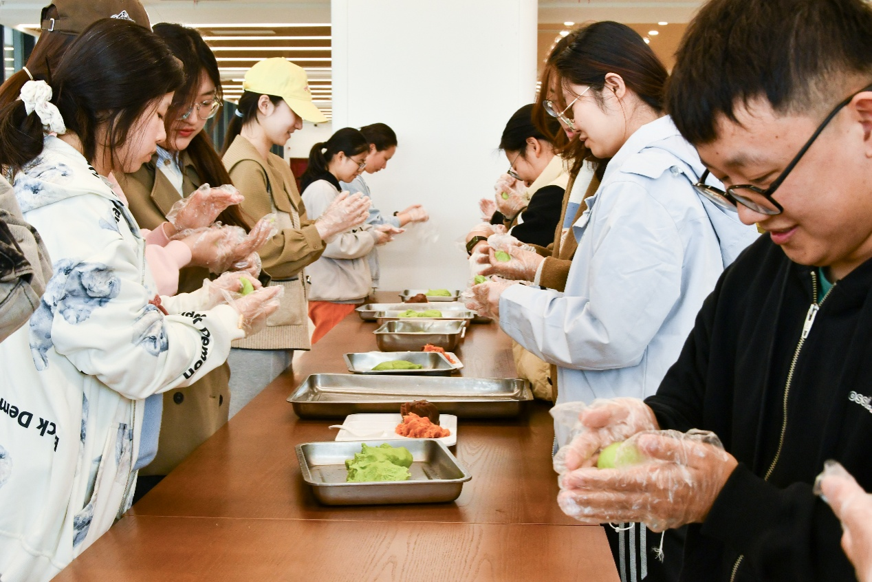 制作过程中,大家相互交流、相互学习,欢声笑语回荡在食堂里。从一开始的手忙脚乱,到后来的熟练自如,同学们在体会到了动手的无穷乐趣的同时,也感受到了其中蕴含的文化魅力。