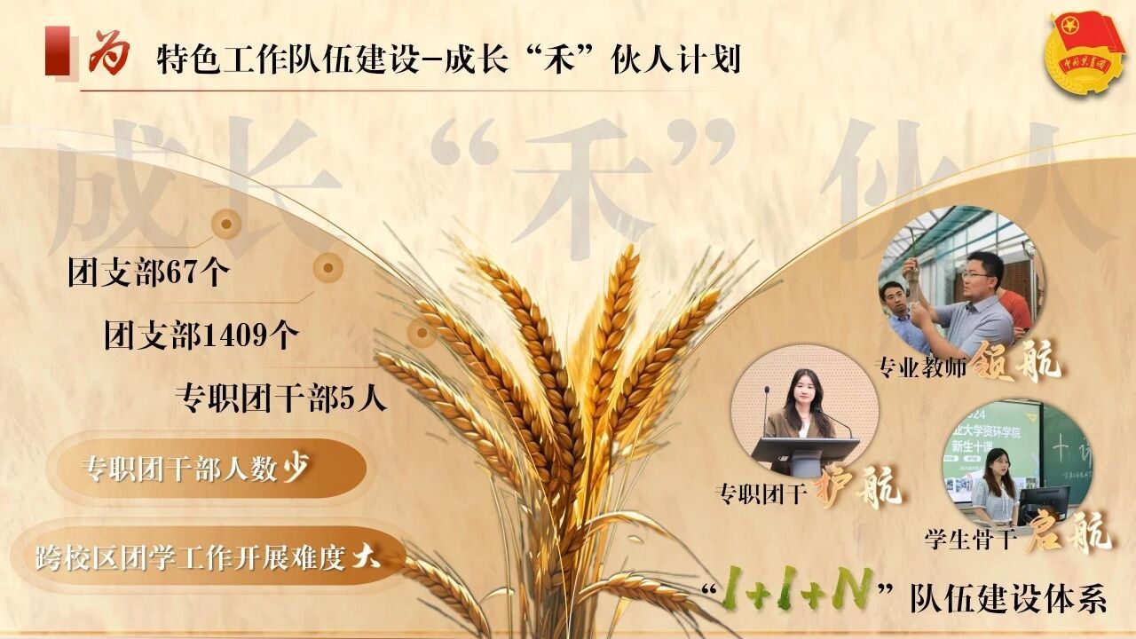 为赋能青年成长,资环学院团委构建“专业教师领航+专职团干护航+学生骨干启航”的“1+1+N”特色队伍体系——“成长禾伙人”计划。