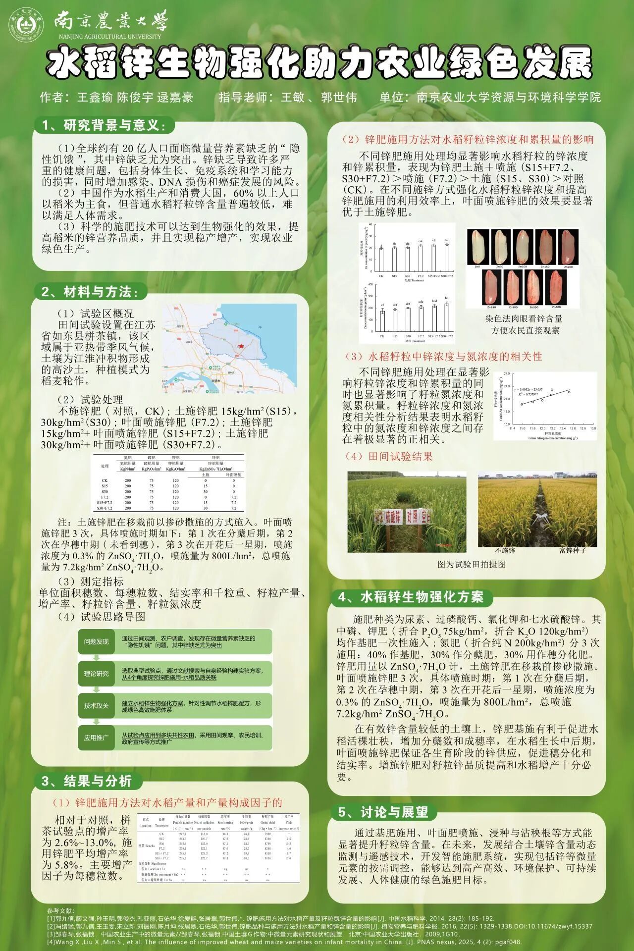 全球约有20亿人口面临微量营养素缺乏的“隐性饥饿”,其中锌缺乏尤为突出。缺锌会导致儿童发育迟缓、免疫力下降、智力受损,成人则可能出现生殖功能障碍、皮肤炎症等问题。中国作为水稻生产和消费大国,60%以上人口以稻米为主食,但普通水稻籽粒锌含量普遍较低,难以满足人体需求。水稻缺锌也可能会出现簇生、僵苗、红苗、不分蘖的症状,导致减产。科学的施肥技术可以通过优化水稻产量构成因子实现水稻增产,并且提高稻米的锌营养品质。项目寻求科学的施肥措施以达到稳产增产同时实现稻米品质的提高,实现绿色生产。