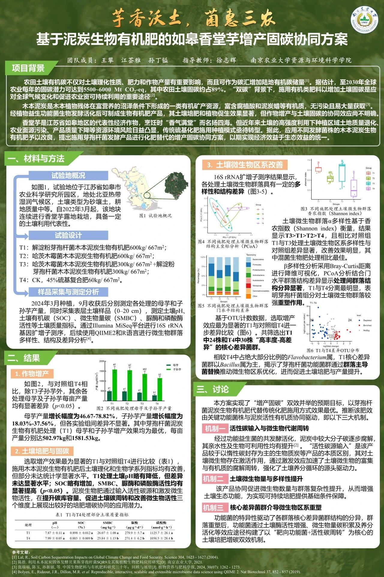 在全球“双碳”“双减”战略背景下,提升农田土壤有机碳储量是实现农业减排固碳与可持续发展的关键途径。木本泥炭作为一种富含腐植酸等活性有机质的清洁矿产资源,经特定功能菌株生物发酵活化后,可制成高效生物有机肥。本项目聚焦江苏省如皋市代表性经济作物——香堂芋,针对其传统硫基化肥种植模式导致的土壤退化、面源污染及品质下降等问题,旨在探究应用不同功能菌株发酵的木本泥炭生物有机肥,替代传统化肥的可行性。该方案不仅能大幅提升香堂芋产量,还能有效改善土壤质量,增强微生物活性,提升土壤碳库容量与周转效率,为应对气候变化、缓解农业面源污染、促进土地可持续利用提供了科学依据和技术支撑。