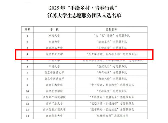 图1 2025年“手绘乡村·青春行动”江苏大学生志愿服务团队入选名单
