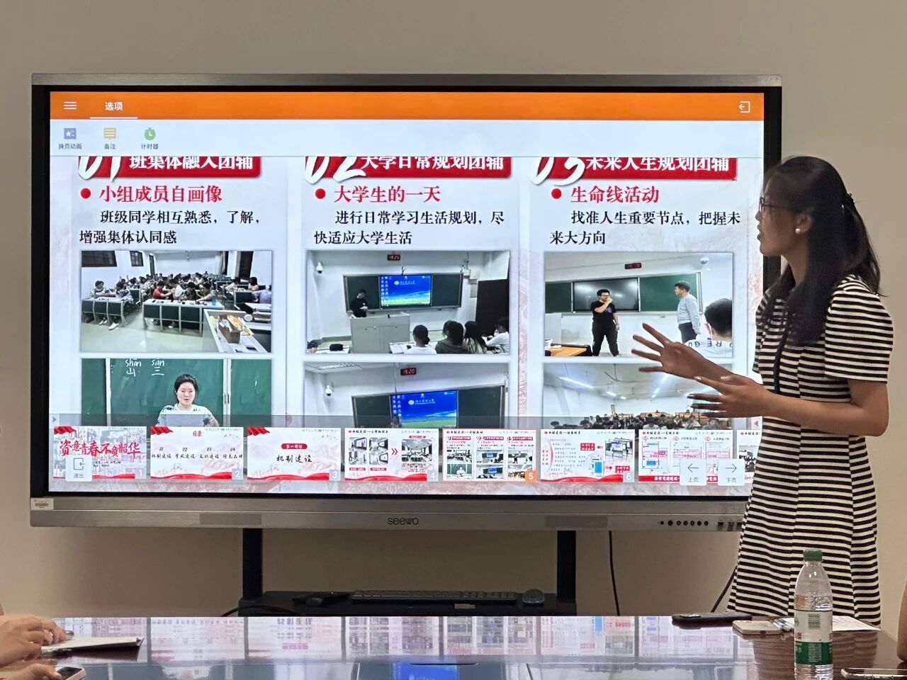曾任环工类2402班团务助理的刘溢洋首先进行经验分享,她围绕“机制建设、学风建设、文化建设、特色品牌”四大方面展开介绍:在机制建设方面,需与班主任进行积极沟通与交流,组织好新生的班委选举,构建班级优秀管理核心;学风建设和文化建设方面则是要与新生着重强调学习重要性、在班级内实行晚自习打卡制度;打造特色品牌方面,刘溢洋提到可与学院各协会联合举办活动,既能丰富班级特色品牌建设,也能为先锋支部立项积累宝贵的实践成果。
