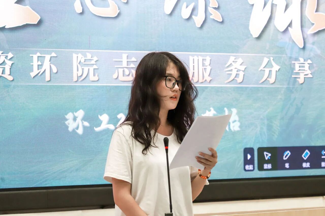 志愿分享会上,环工231班田若怡同学以“美丽中国讲解员”的身份分享了她的环保实践。她始终秉持“绿水青山就是金山银山”的理念,怀揣对自然的敬畏与热爱,通过生动的语言在校园和社区开展环保宣讲,让枯燥的知识变得易懂、易接受。