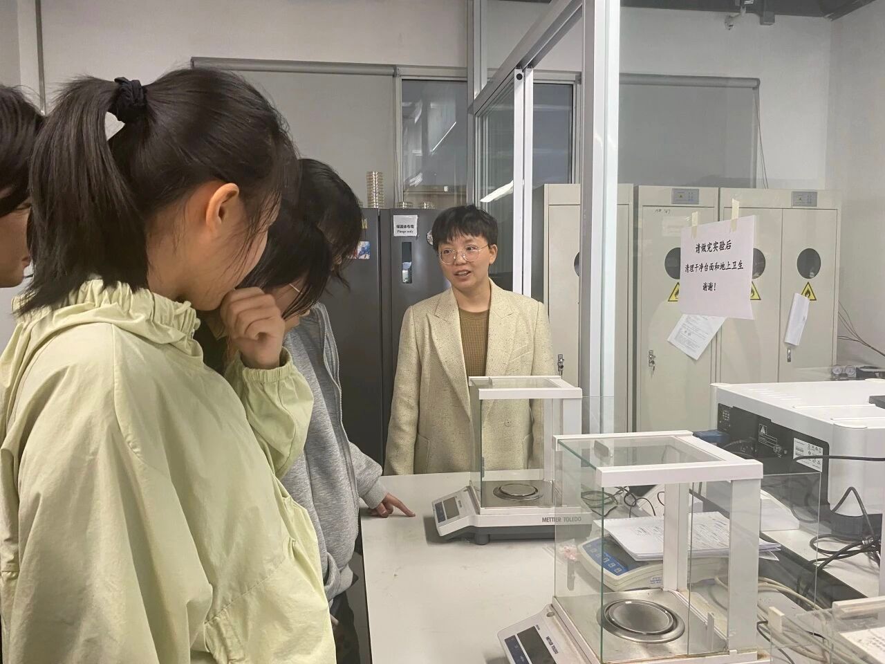 报告后,2025级本科生新生在各班班主任的带领下有序走进实验室,近距离接触科研设备与实验环境,沉浸式体验科研氛围。