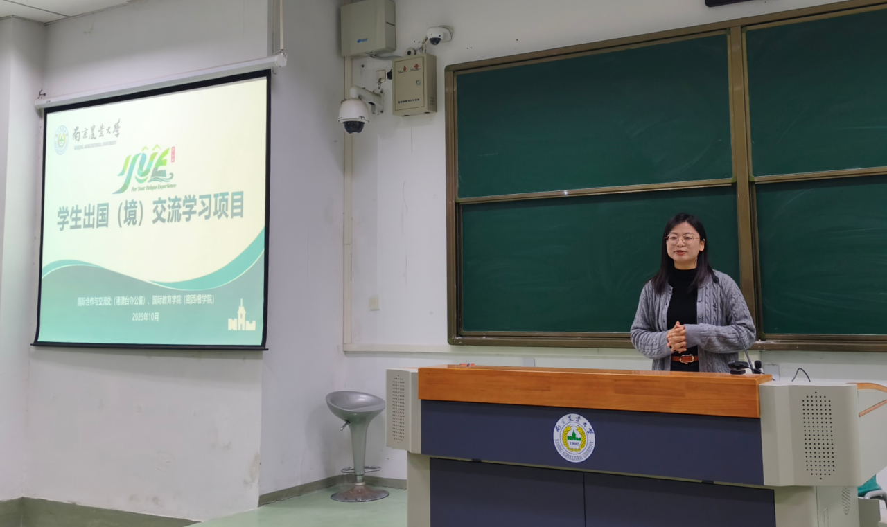 在介绍南农国际合作留学项目时,刘老师重点讲解了短期交换、联合培养、海外实习、双学位项目等不同类型项目的申请条件、时间规划和有关政策。刘老师结合南农学子出国(境)交流的真实案例,分享了学长学姐在海外学习的收获与经验,并从语言准备、材料申请、文化适应等方面为新生提供实用指导,鼓励大家尽早树立国际视野,提前做好规划。