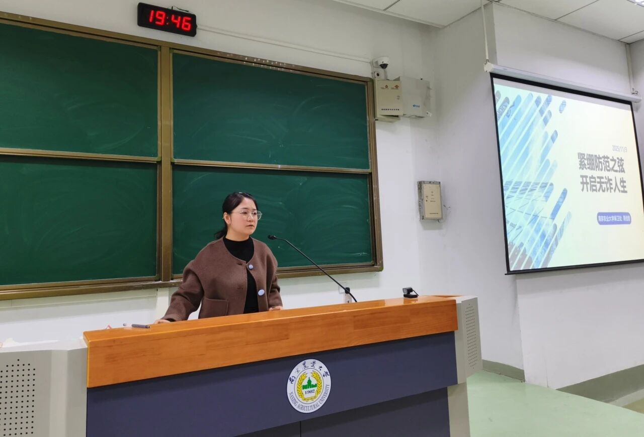 随后,周佳慧老师聚焦新生群体常见的安全风险,开展安全教育专题讲座。她以近期高发的电信网络诈骗为重点,通过真实案例拆解了 “校园贷”、“刷单返利”、“冒充老师 / 亲友借钱” 等常见诈骗套路,提醒新生牢记 “不轻信、不透露、不转账” 的防诈原则。