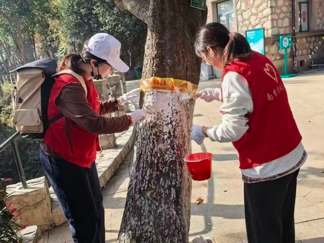 2025年11月15日,为深入宣传生态保护理念、倡导人与自然和谐共生,引导资环学子将环保意识转化为日常行动,资环学院团委实践部组织青年学生参与由中山陵园管理局森林管理处、中国科学院紫金山天文台联合举办的古树名木冬季养护、道路维护、护鸟宣传系列志愿服务活动。