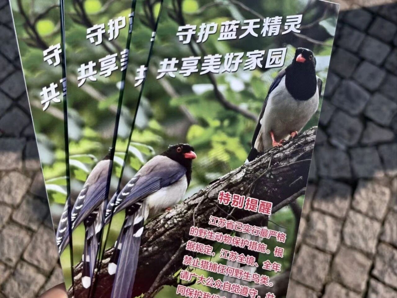 “您看!那是红嘴蓝鹊,属于江苏省重点保护野生鸟类。”志愿者抬手示意,指向掠过游客眼前的蓝翼长尾鸟。活动现场,志愿者们向过往行人递上《守护蓝天精灵,共享美好家园》主题宣传折页,结合册中清晰的鸟类图鉴展开专业讲解,将抽象的鸟类保护知识,具象化为“拍摄时关闭闪光灯”“拒绝随意投喂”等通俗易懂、人人可践行的日常行动。