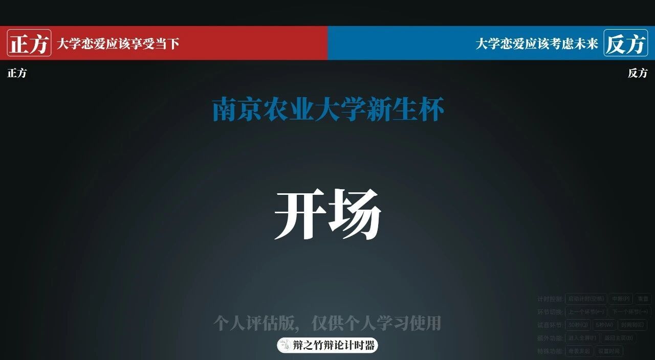 自由辩论环节,双方辩手唇枪舌剑、思维交锋,最终达成共识:理想的大学恋爱,是 “当下”与“未来”的平衡艺术——既不忽视长远规划,也不辜负当下时光。不同阶段各有侧重,个人独立是核心根基,平衡点亦需随年级灵活调整,这便是贴合成长的爱情智慧。