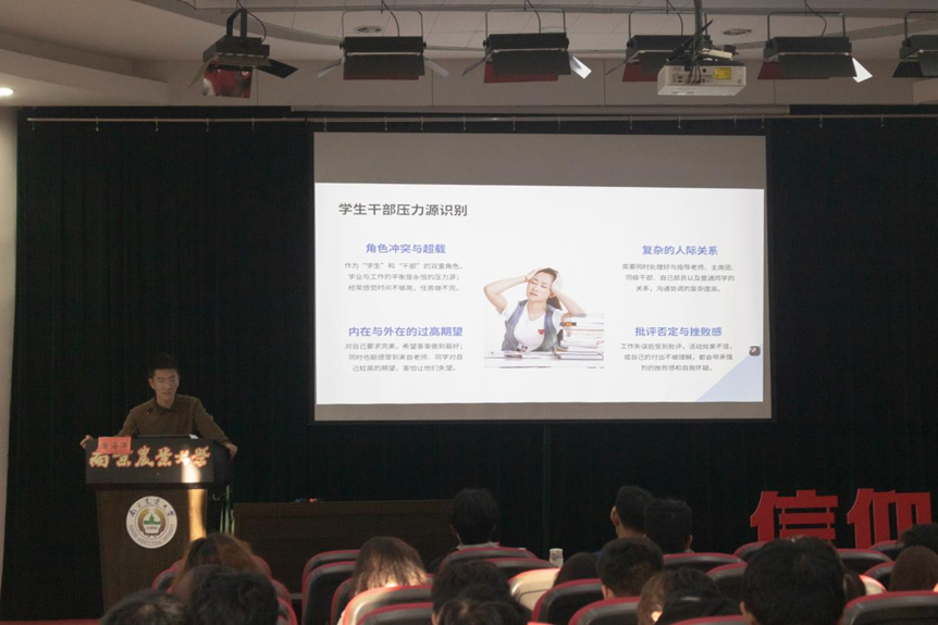 唐海洋围绕“卓越团队构建与核心能力提升”的主题做专题分享。他从责任担当、沟通协调、高效执行等多个维度,结合高校学生工作的实际案例,深入浅出地阐述了学生干部应具备的核心能力与素质。唐海洋的讲解既有理论高度,又极具实践指导意义,其生动的语言与深刻的见解引发了在场同学的深入思考,现场掌声不断。