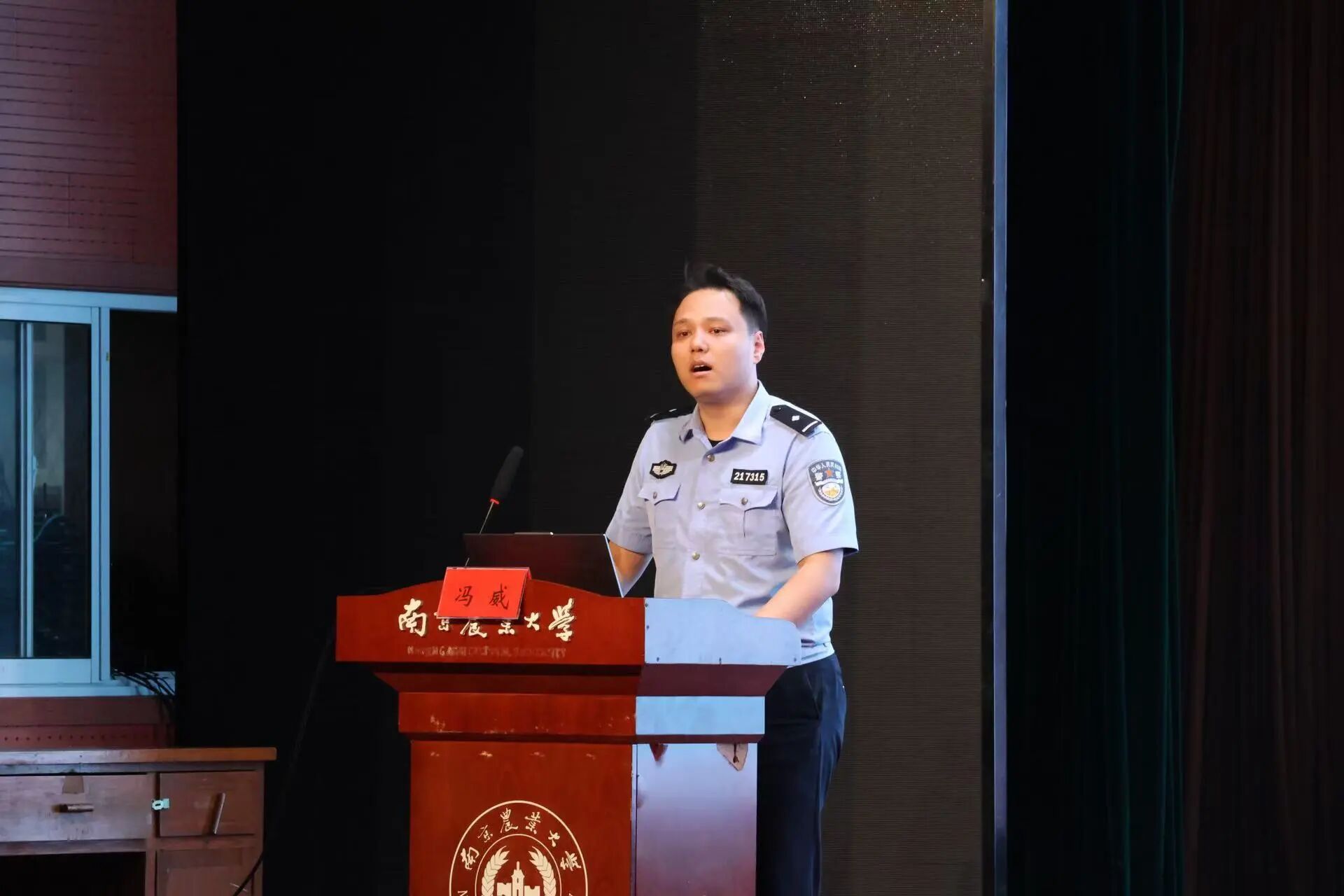 大会伊始,来自泰山新村派出所的冯威警官为同学们带来了一场生动而深刻的反诈与安全教育讲座。冯威结合近期高校高发的真实案例,如刷单返利、虚假投资理财、网络游戏产品虚假交易、冒充熟人等诈骗手段,深入浅出地剖析了诈骗分子的作案手法和心理套路。