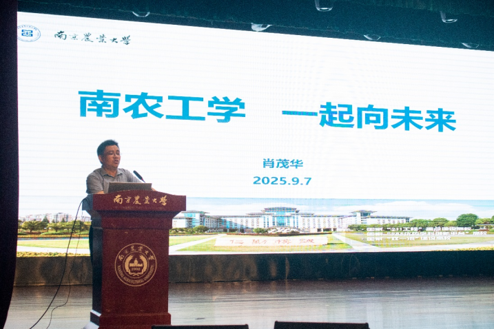 肖茂华带领全体新生“走进”工学院,系统而生动地介绍了学院自创建以来的历史沿革、当前的发展格局以及鲜明的学科特色,并展望了充满机遇的未来规划。他重点围绕科研创新前沿,细致梳理了学院在智能农机等关键领域的突破性成果与在研项目,通过列举师生共创的典型科研成果,让新生深刻感受到学院强劲的科研实力与创新氛围。这段讲述不仅拓宽了同学们对学科前沿的认知,也进一步增强了对学院办学传统、学科优势与发展愿景的认同与自豪。