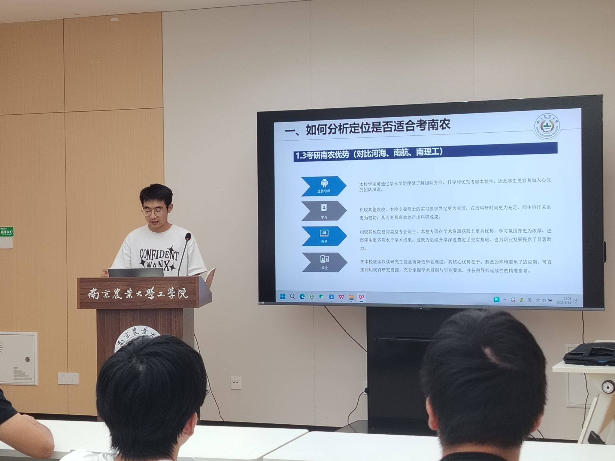6 月 19 日下午 14:00,一场干货满满的考研南农备考交流会在工学楼 B441 会议室顺利举行。本次特邀请南农本校在读研究生张子毅和朱晨旭大家交流备考经验和研究生生活。