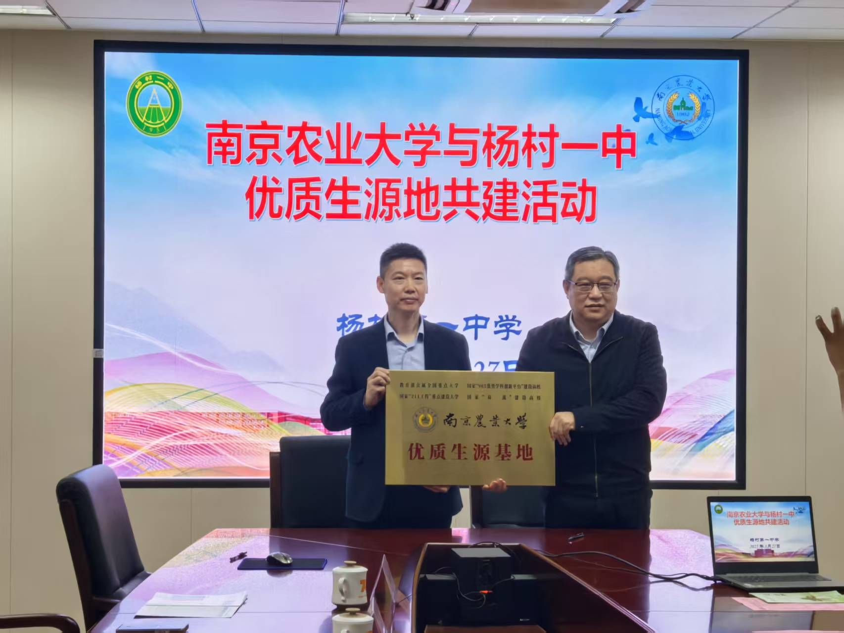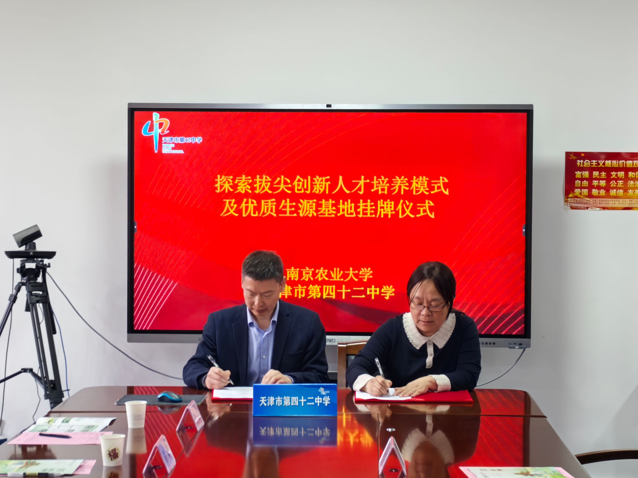活动期间,招生组先后走访天津市杨村第一中学、第四十二中学两所重点中学。在杨村一中,李国营副校长介绍了学校办学情况、生源质量及特色培养方案;在四十二中学,党委书记张洁、校长施永梅分别介绍了学校基本情况和办学特色。刘平就学校历史底蕴、学科优势、人才培养、升学就业、历年招生情况等进行介绍,并与两校高中分别签署了《南京农业大学优质生源基地中学共建协议书》,举行了优质生源基地授牌仪式,双方就人才培养达成深度合作意向,为进一步推动优质生源基地建设奠定了良好基础。