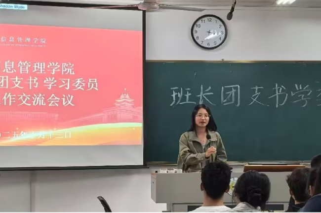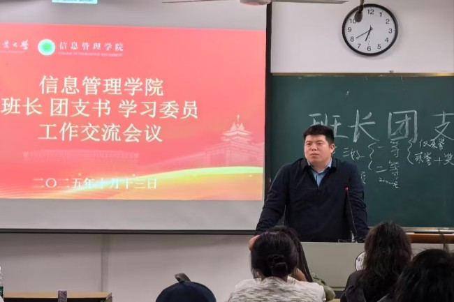 为进一步加强班委队伍建设,强化思想引领,提升责任担当,信息管理学院于2025年10月13日隆重举行了新学期班长团支书学委工作交流会议。信息管理学院党委副书记孙国成,学院专职辅导员王文茜,院团委学生兼职副书记周航、学生会执行主席代文轩及大一大二全体班长团支书学委参与本次活动,共同开启凝聚青春力量、赓续奋斗精神的新征程。