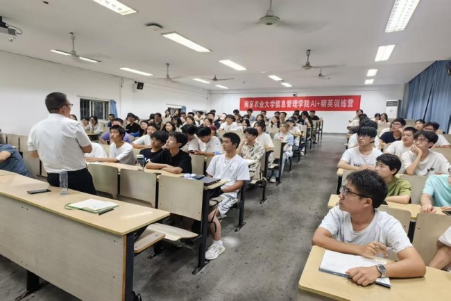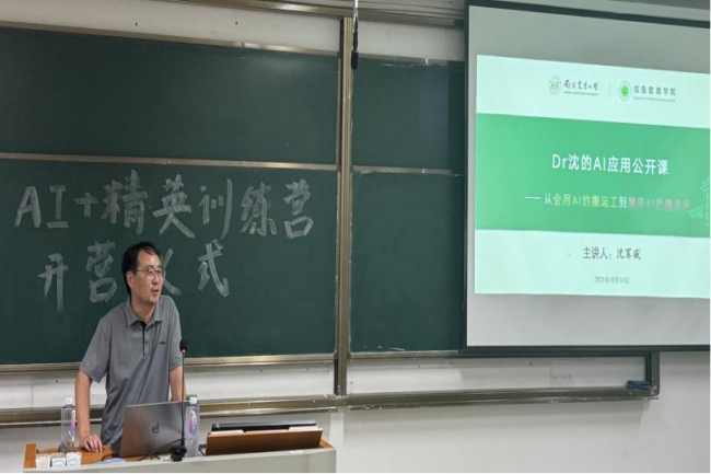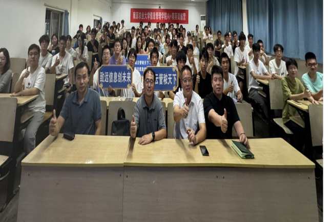 2025年10月10日,信息管理学院AI+精英训练营开营仪式在浦口校区顺利举行。本次开营仪式由学院副书记孙国成主持,学院副院长王东波教授、信息管理科学系沈军威副教授、物流工程系李健副教授、辅导员郑澍坤出席活动。