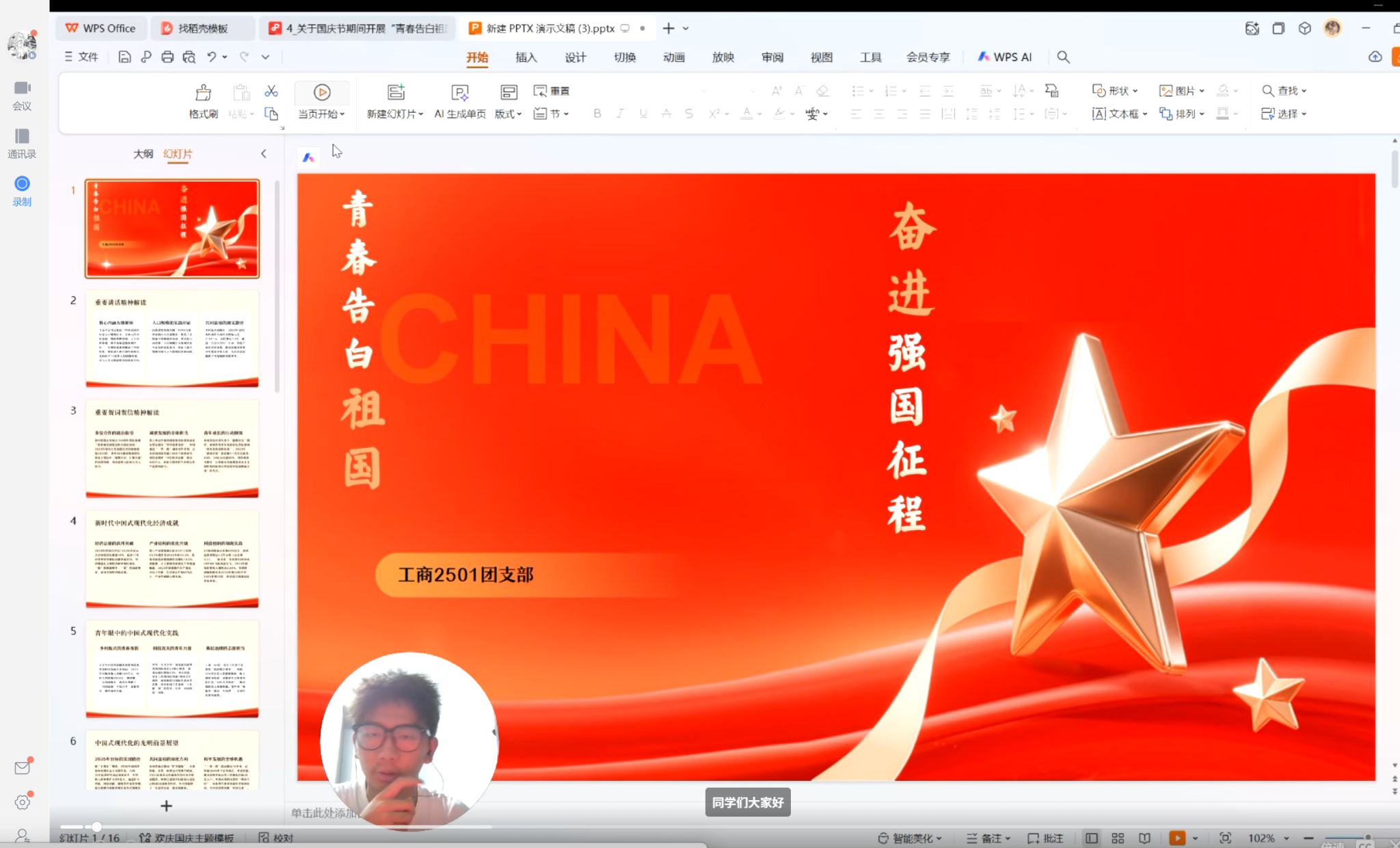 工商2401、工商2501等团支部以“学思践悟习近平总书记重要讲话精神”为主题召开专题学习会,集中学习习近平总书记在庆祝中华人民共和国成立76周年招待会上的讲话。同学们围绕“只争朝夕、永不懈怠”的奋斗精神展开讨论,纷纷表示要在学习科研中将理想信念与国家发展同频共振,以行动书写新时代青年的使命担当。