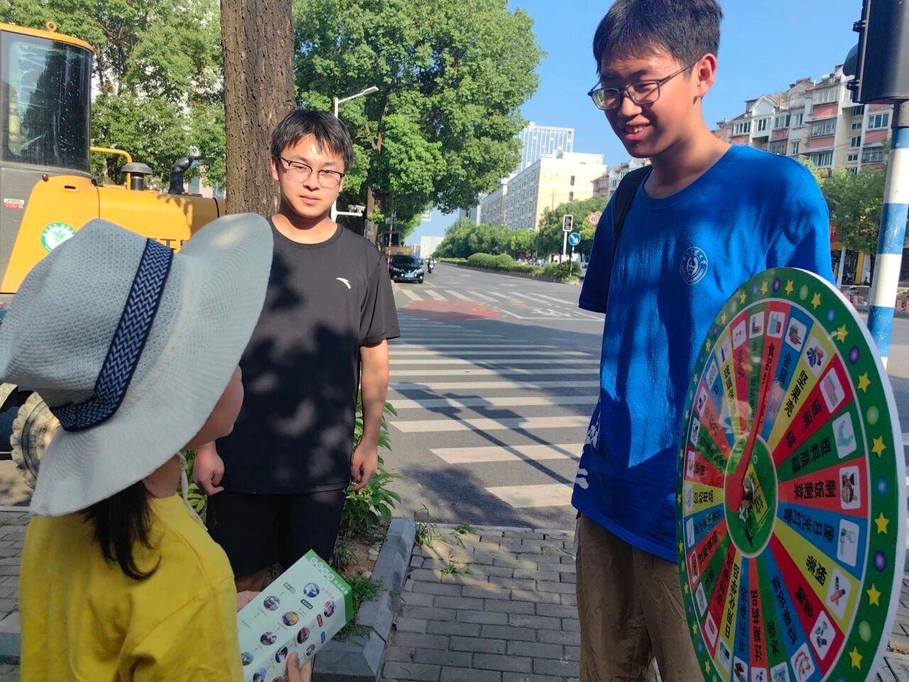 互动阶段,团队成员和南京市生活垃圾管理社会监督员朱军以“环保知识有奖问答”与“垃圾分类转盘问答”为切入点,吸引居民踊跃参与。孩子们化身“环保小卫士”,争相抢答赢取绿植与文具奖品,在协作游戏中深化生态认知。