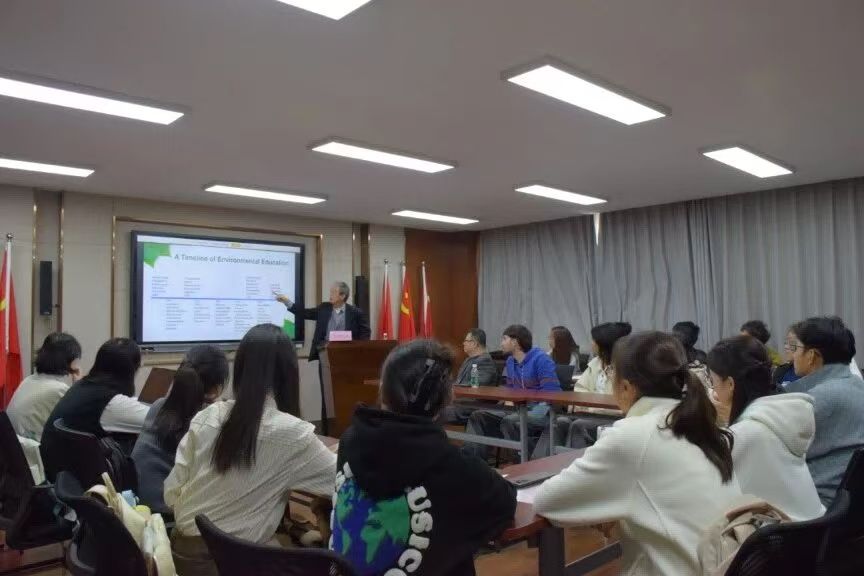 Saito教授拥有丰富的国际合作经验与深厚学术积淀,讲座中,他结合全球环境挑战,指出环境教育核心是培养具备环境素养、能参与问题解决的公民,需贯穿终身且融合多学科,并以巴西Probio-EA教材为例,介绍本土化、多样化的环境教育实践,建议借助概念图构建系统思维,融入伦理与文化因素,并呼吁环境教育应坚持问题与行动导向。