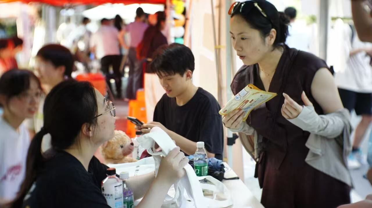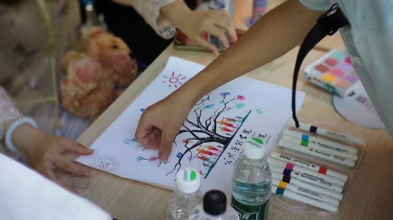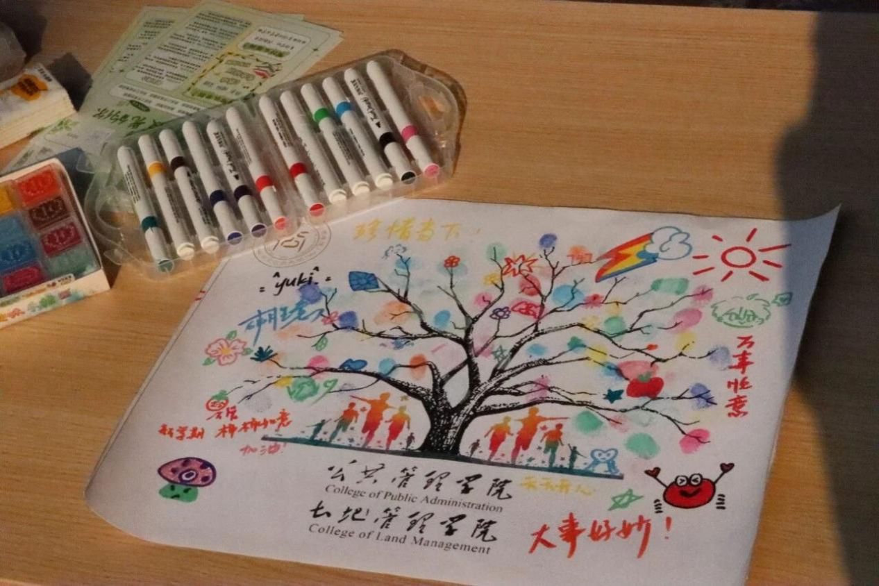 新生们陆续前来迎新摊位报道,在志愿者的引导下顺利完成签到,并领取实用贴心的新生礼包。今年的迎新活动中,别出心裁的“希望树”吸引了许多新同学踊跃参与。新生们纷纷用按过印泥的五彩指尖,在树上按下属于自己的独特印记,或是用马克笔绘出卡通图案,以童真又郑重的方式,表达对大学生活的美好期待。迎新结束时,一棵汇聚梦想与温度的“希望树”出现在了美丽的青春画卷上。