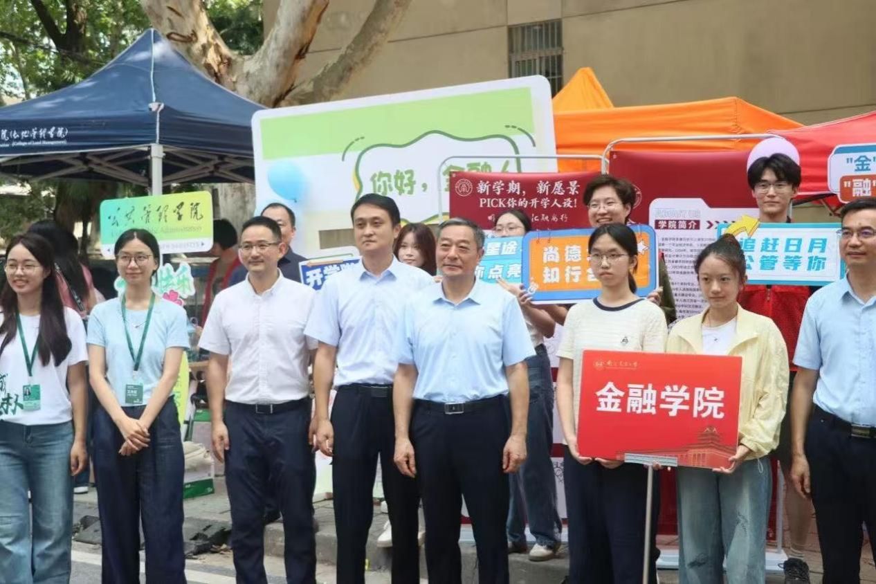 学院领导高度重视迎新工作,上午十点,公共管理学院党委书记罗英姿、公共管理学院党委副书记宋俊峰、公共管理学院副院长刘晓光、公共管理学院副院长刘红光,2025级本科生班主任韩一杰、周涛、吴红梅、刘悦美、颜玉萍、刘金凤、黄从红,本科生辅导员许悦、腊晓悦、谢张弛来到迎新摊位巡视,仔细询问报到流程、志愿者安排及物资发放情况,对学生组织的工作成果表示充分肯定,并现场给予细致指导,鼓励大家继续保持热情、注重细节,让每一位新生感受到“公管温度”。