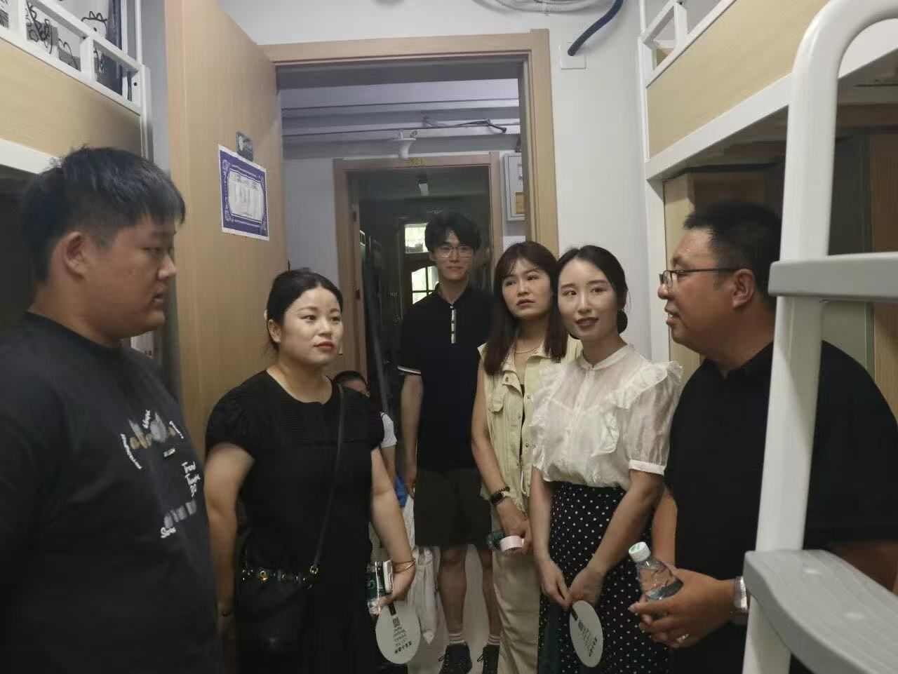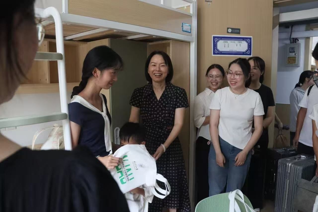 随后,院领导一行走进新生宿舍,亲切看望正在安顿的同学们。大部分新生在家长的陪伴下整理行李、布置床铺、安装床帘,忙碌中透着温馨。院领导、班主任、辅导员与新生及家长亲切交谈,首先代表学院热烈欢迎同学们的加入,并细致询问大家是否适应新环境、是否有急需解决的困难。老师叮嘱同学们“有困难随时找辅导员、找学长学姐,学院永远是你们坚实的后盾”。轻松融洽的交流中,新生和家长们脸上都洋溢着安心与笑容。