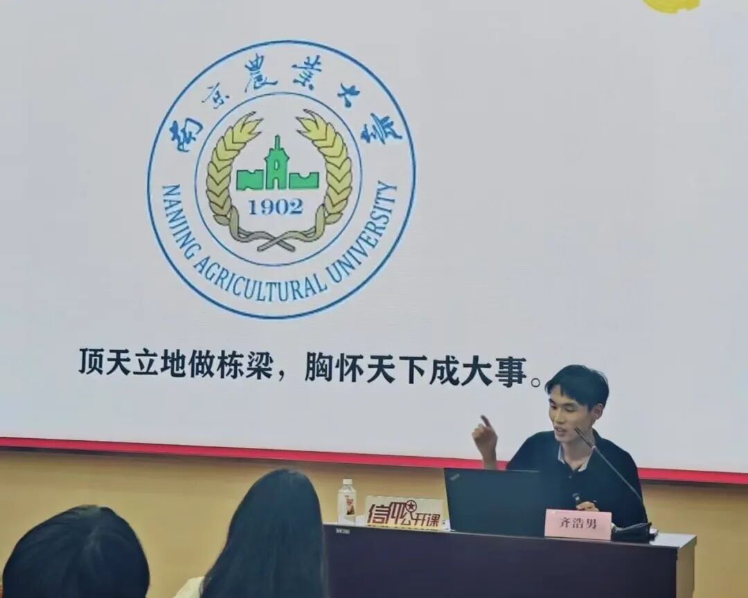 团课以习近平总书记寄语广大青年的微视频开篇,围绕“立大志、明大德、成大才、担大任”四个维度,系统阐释“大写”南农新人的精神内涵与时代使命。主讲人齐浩男以金善宝先生的事迹为例,指出“立大志”的核心是将个人理想融入国家发展,号召青年在民族复兴征程中找准人生坐标。他强调,“明大德”需以社会主义核心价值观为指引,传承以“诚朴勤仁”为核心的校训精神,在守正创新中锤炼品德修养。谈及“成大才”,他结合中国现代棉作科学奠基人冯泽芳的治学理念,强调青年应兼具科学精神与实践能力,在专业学习中筑牢成才根基。在“担大任”部分,通过王酉亭战火护种、邹秉文参与全球粮农治理等校史故事,激励学子以“强农兴农”为己任,在乡村振兴与国家发展中贡献青春力量。