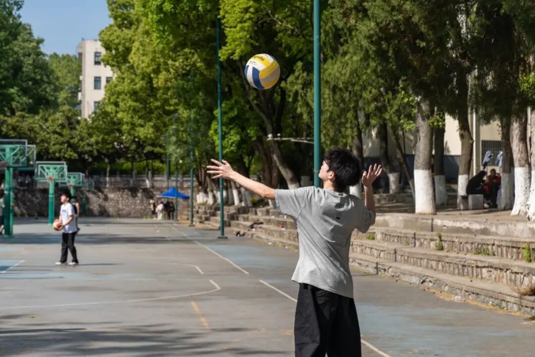 正式比赛前,各班级抽签落位后迅速投入热身。队员们在场地低抢高打,传球弧线交织,扣杀声响此起彼伏,战术在磨合中愈发默契,汗水与讨论声点燃了备战热情。