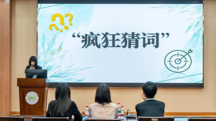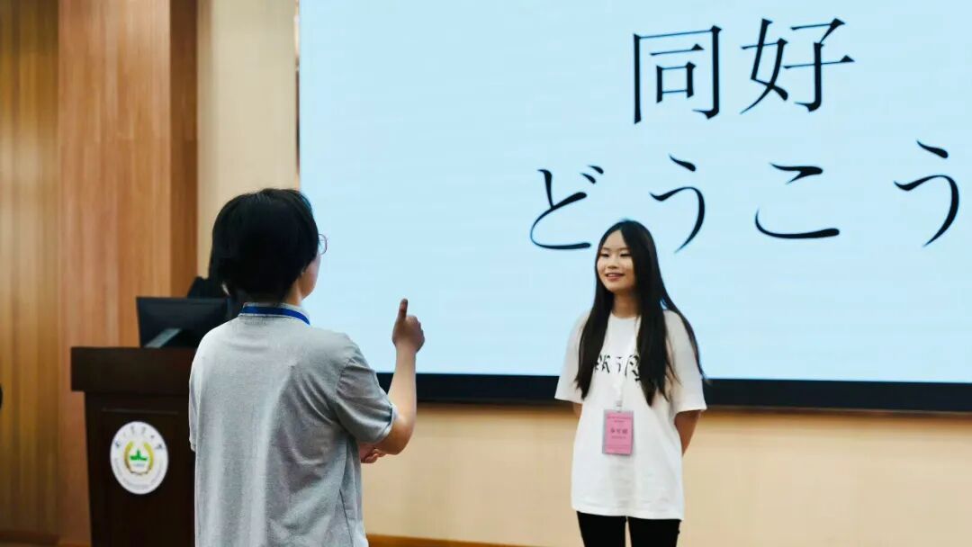 该游戏限时2分钟,每组选派两位选手合作猜词,若用日语回答正确则得分翻倍。选手们通过生动的肢体语言和默契配合,将词语内涵演绎得淋漓尽致。第十组凭借精准的理解和快速反应,成功答对7题,摘得该环节第一名。现场笑声不断,气氛热烈。
