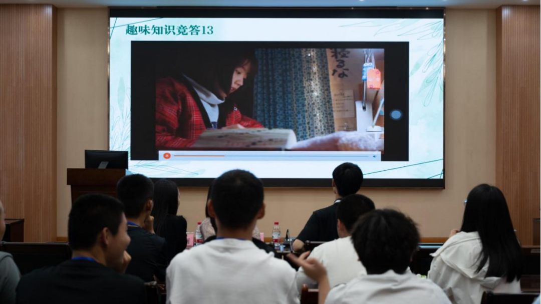 该环节围绕日本文化和趣味知识展开,采用群内接龙抢答的形式进行。各组组长踊跃参与,现场气氛紧张而激烈,同学们在答题过程中进一步提升了口语表达能力。