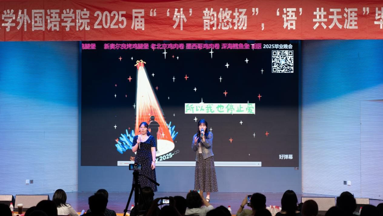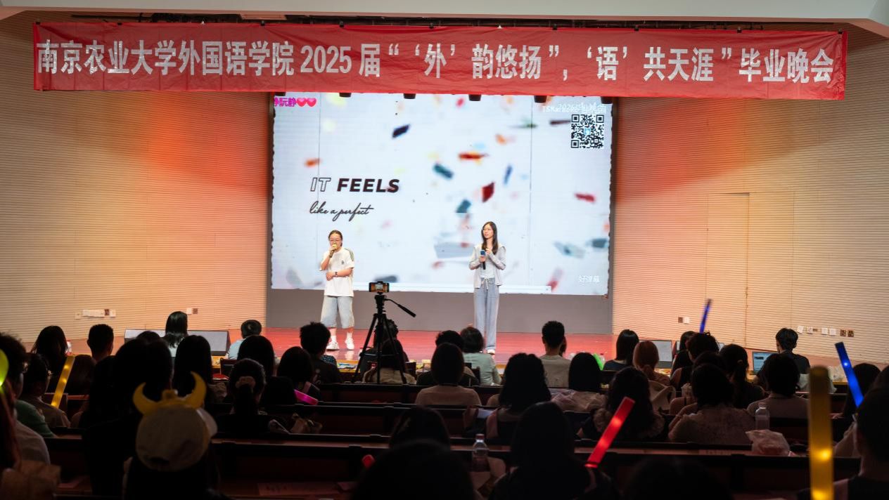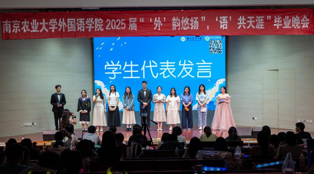 5月29日晚,外国语学院团委主办的2025届毕业歌会“外韵悠扬,语共天涯”在卫岗校区大学生活动中心举办。