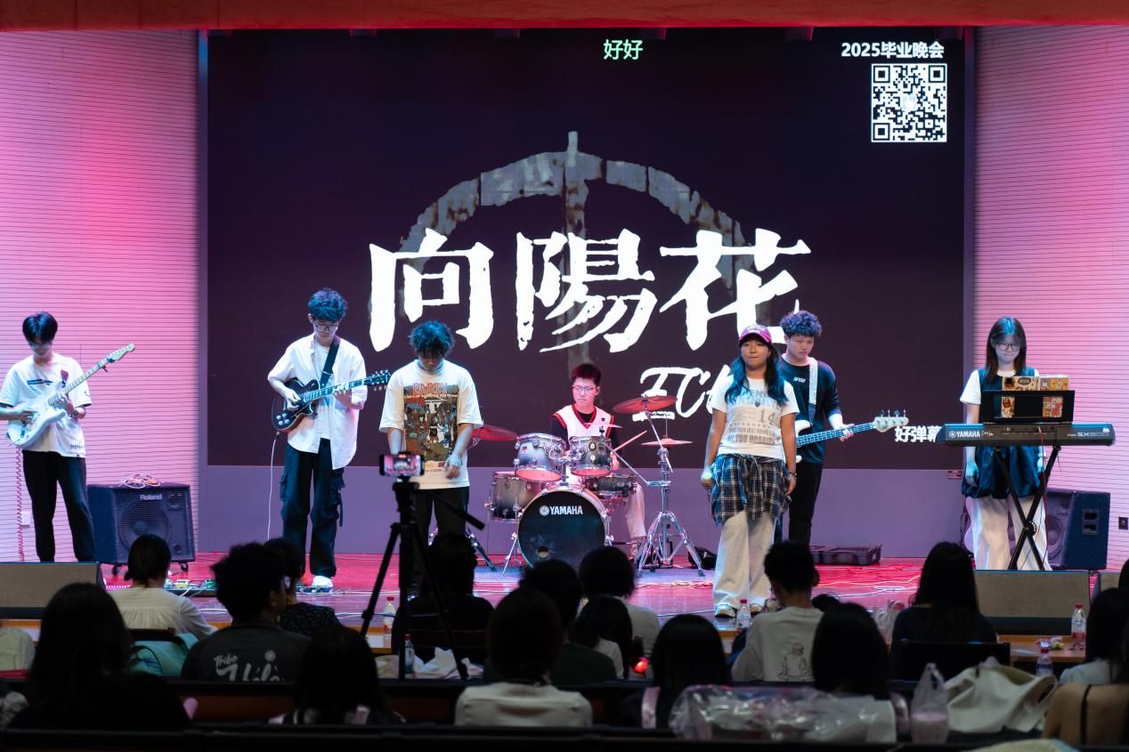 激烈的动次打次声划破寂静的夜,瞬间,满座的情绪被彻底点燃。在这个独特的夜晚,伴随着回荡在大活的器乐声,毕业歌会拉开了序幕。