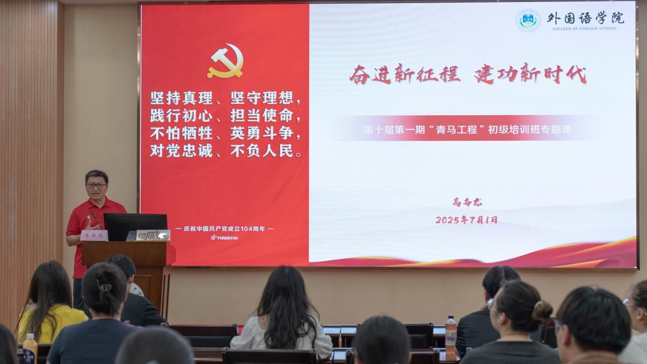 外国语学院党委副书记高务龙围绕青年马克思主义培养工程讲授了一堂生动的信仰公开课。他强调青年马克思主义培养工程的核心是培养具有坚定政治信仰、能从历史背景看待问题的青年。在中国,政治属性体现为拥护党的领导与 “四个自信”,这种自信需基于深思熟虑而非盲信。高务龙还通过马克思、毛泽东青年时期的事例,以及邓紫棋版权纠纷、民国文盲率等案例,阐述了不同时代背景下的问题与思考。
