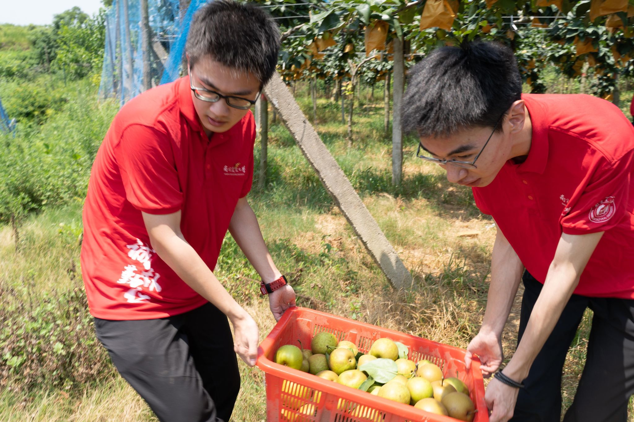 这场直播由“将乡小农女”与南农外语学子组成“带货搭档”,在“将乡小农女”的社交媒体账号开播。实践团成员分工明确,有人负责讲解,从翠冠梨的种植环境(红安山区海拔300米,昼夜温差大,果子积累更多糖分)讲到采摘标准(坚持8成熟采摘,保证口感与耐运输性);还有人负责互动,实时回复“一箱有多少个”“能放几天”等问题。短短几小时的直播里,翠冠梨订单量不断攀升,不仅让红安的优质水果走出了大山,更让南农外语学子在实践中锤炼了沟通与推广能力,实现了助农与育人的“双向奔赴”。