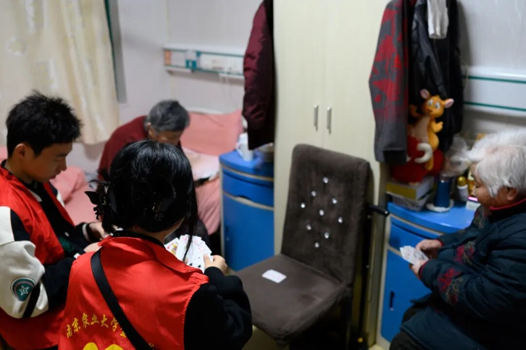 在院长的提议下,志愿者陪老人玩起了扑克。老人们紧盯牌面,不时与志愿者们交流策略与心得。志愿者们耐心陪同,边打牌边聊天,倾听老人往事。牌局中,欢声笑语不断,气氛温馨热闹。这场牌局游戏,其意义远超出了游戏本身,它是志愿者们通过陪伴传递温暖、用爱心点亮希望的一种方式。老人们感受到关怀,志愿者收获成长与感动。时间渐渐流逝,但这份陪伴带来的温暖却能经久不息。