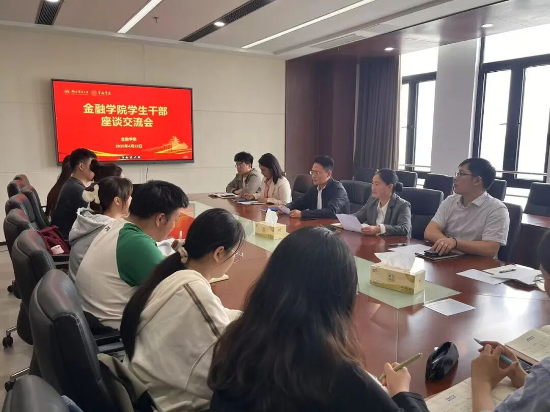 4月22日中午,金融学院学生干部座谈交流会暨第十三届主席团第一次例会在第三实验楼1202会议室顺利举行。金融学院党委副书记朱珠,团委书记、本科生辅导员徐冰慧,团委副书记、本科生辅导员陈跃,研究生辅导员李迎军,本科生辅导员陈硕锟、王晓迪,以及第十三届学生组织主席团成员共同参会。