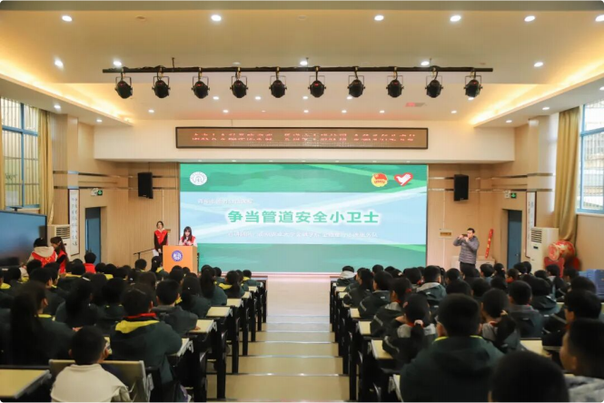 1月16日,团队走进南京市孝陵卫初级中学小学部,面向200余名四、五年级学生开展以“ 争当管道安全小卫士 ”为主题的宣讲活动。
