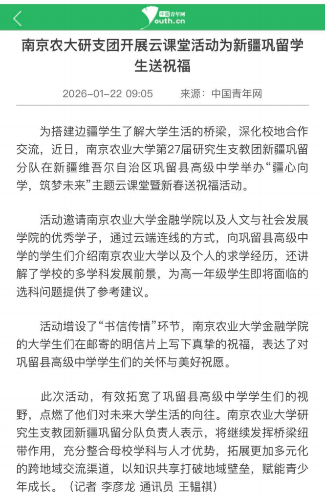 团队向新疆巩留县高级中学学生寄送活动明信片